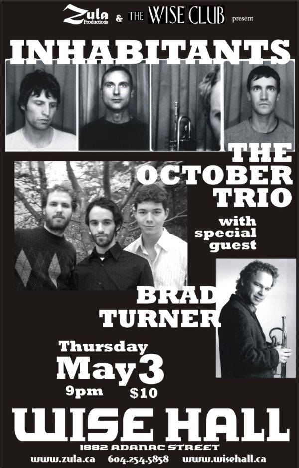 After Rime, there came to be many ZULA organized events at East Vancouver’s WISE Hall, starting with the WISE UP! Series of Fundraisers to help with the renovations of the aged hall. Below, you’ll find some of the Wise Up! posters. For all other Zula concerts, including the lone Cellar Rashied Ali concert, from September 2006 through till May 2007, please see farther down below. To view a larger image, click on any poster.