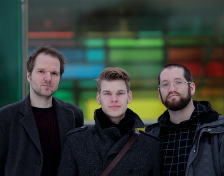 An exciting free German trio of brilliant, fierce piano, bass and drums, Grünen (“the greening”) was formed in April 2009 when Landfermann invited Kaufmann and Lillinger to participate in his ongoing concert series of improvised music at the Loft in Cologne. Their first – completely improvised – encounter was recorded and subsequently released by Clean Feed Records. For their second disc, the trio mixed spontaneous improv with some predetermined structures – taking new turns with written material, some of it rhythmically quite intricate and/or evoking images of surrealistic jazz and song: a strategy the three have adopted for their highly unpredictable concert performances as well. On the occasion of Achim Kaufmann’s receiving the Albert Mangelsdorff award, grünen performed at the Berlin Jazz Fest in November 2015 where they were joined by poet gdr guenther.