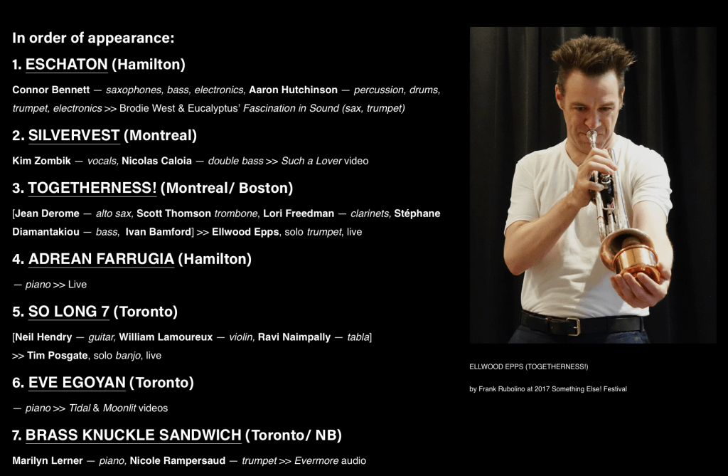 Tabled for discussion are our plans at AGH and Bayfront Park later this year, short chats with some artists, and never before seen video and audio by some artists we hope will visit Something Else! Festival & Music Series and Watch it Burn! Composite Arts Series as soon as feasible. Here are the artists we’ll hear from, chat & play with on May 13 (yes, some of this session involves optional audience participation!):