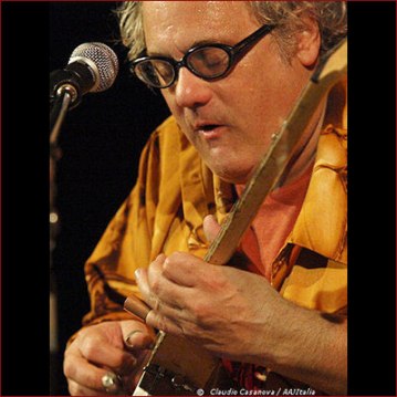Born in Mount Vernon, New York, Eugene Chadbourne grew up in boulder Colorado, but it was during a stint in Calgary that he began his musical career, inspired by the far-ranging music of Anthony Braxton and Derek Bailey. Returning to the USA, he began creating his own unique blend of folk guitar musics and free improvisation, founding the band Shockabilly and collaborating with such musicians as Henry Kaiser, John Zorn, Frank Lowe, Jimmy Carl Black, Han Bennink, Fred Frith, Elliott Sharp, Leo Smith, and many others. As Robert Palmer wrote in the New York Times, “Chadbourne plays in a wild, teetering style that approaches anarchy and sometimes takes the plunge.” Since then, he has appeared on over 100 recordings, toured Europe, Asia, and Australia, and currently performs in a quintet with Jeb Bishop trombone, Jorrit Dykstra saxophone, Nate McBride bass and Curt Newton, drums. Eugene Chadbourne is the inventor of the unique performing instrument, the electric rake.