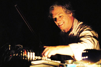 Canada has a tradition of creative visual artists who are also musicians – specifically, drummers: Montreal’s John Heward, Vancouver’s Gregg Simpson, Toronto’s Gordon Rayner, and now in Hamilton, Mike Hansen, a recent Toronto expatriate. A full-time artist since 1993, Hansen’s music revolves around the notion that noise can be a social tool that brings together both art and its participants, breaking the art world’s traditionally rigid boundaries. He points out: “As George Gershwin said, ‘I frequently hear music in the heart of noise.’ It can be an improviser’s delight, the sounds that surround us disintegrating all a priori coding of our existence.” Hansen is known as an experimental turntablist, and an electronic creator and sound sampler. Two of his latest projects are Strum, a participatory sound installation that examines music improvisation through the idea of a self-playing guitar, and ConFab, a six-channel video/sound installation that allows the viewer to see the drum solo from the drummer’s perspective.