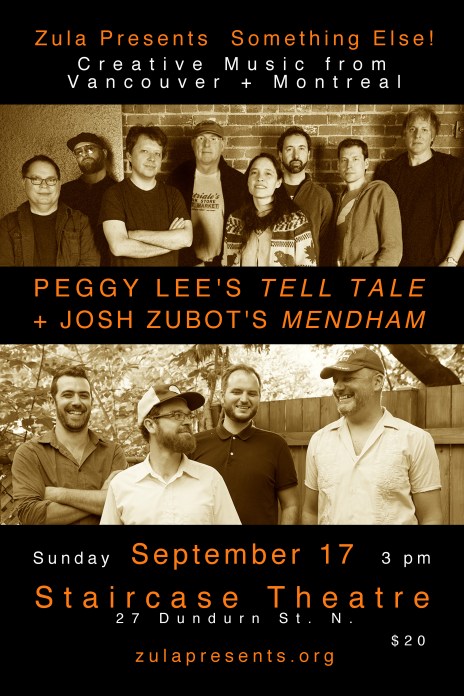 Peggy Lee Octet will present music from its debut CD, Tell Tale (Drip Audio 2016) at the 2017 Guelph Jazz Festival and venues in Montreal, Brooklyn, Toronto and Hamilton, September 12-17.