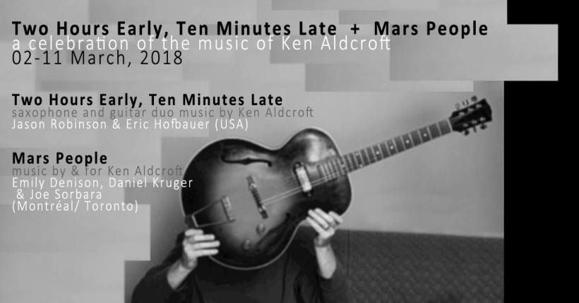 March 2018 will see a vanload of adventurous musicians from both sides of the 49th parallel travel from Montréal through Southern Ontario in celebration of the late guitarist Ken Aldcroft (1969 – 2016), a long time leading figure in Canada’s creative music community.